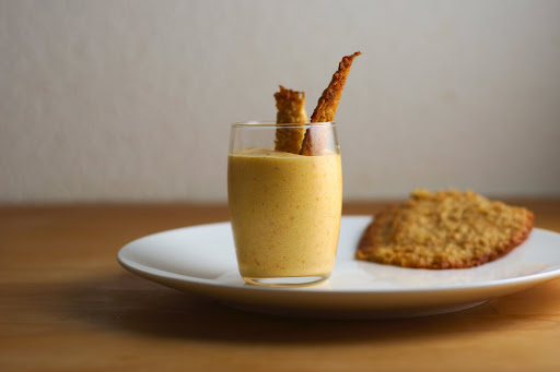 Avec tout ça, j’ai fait de la mousse à l’abricot, accompagnée de biscuits aux flocons d’avoine. La mousse un peu acide est bien contrebalancée par le sucre des cookies, je trouve que ça va vraiment bien ensemble 🙂