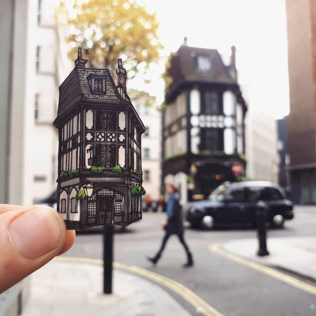 Traveling illustrator Maxwell Tilse documents his European journeys by creating small drawings of each city he lands in. After two years of living in London, Tilse has released a new series of miniature cut-out illustrations that depict the city’s oldest pubs and other famous landmarks. The detai