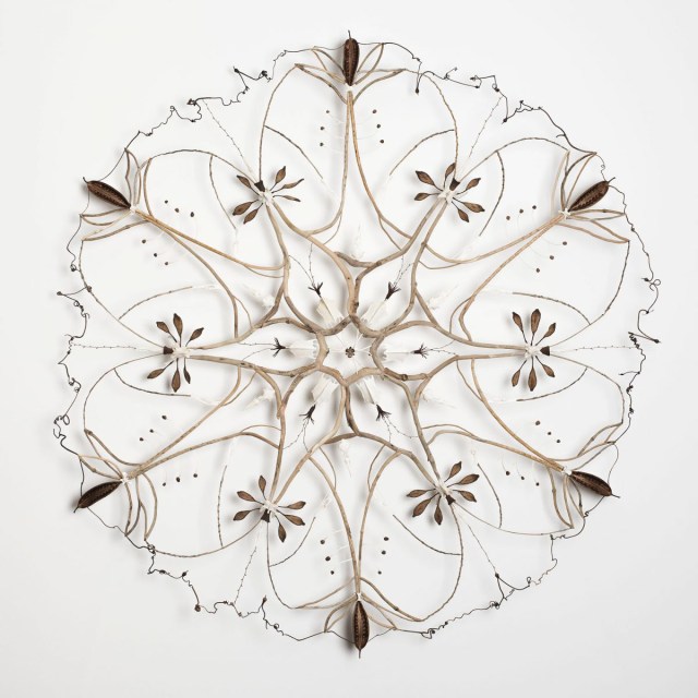 For the last twenty years Australia-based artist Shona Wilson has intimately collaborated with nature by building sculptural assemblages that incorporate a myriad of found organic specimens. In her 2016 body of work, Offering, she formed mandala-like pieces from objects such as seedpods, twigs, and bones that were intended as gestures of gratitude to her practice’s source—nature.