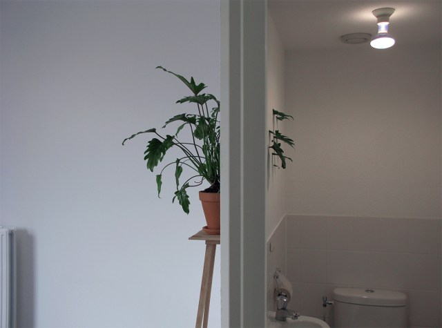 Philodendron Xanad is a repeating site-specific installation by Belgium-based artist Ruben Bellinkx that physically imbeds a common houseplant into the walls of galleries and homes. The plant calmly rests on one side of the wall as several of its leaves reach through layers of dry wall and wooden beams to grow on the other side.