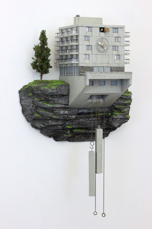 A modern interpretation of the cuckoo clock by German artist Guido Zimmermann that takes its cues from urban living and compelling architecture. “The hull is new, but the soul, a clockwork with a cuckoo, is still an old one,” the artist states while addressing two significant aspects: buildings with a striking history and architectural value, and the social living issues around the blocky, concrete structures.[…]