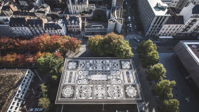 Arthur-Louis Ignoré, also known as Ali, paints white patterned carpets on public sidewalks and passageways in cities across the world, including recent installations throughout France and Finland. The works are inspired by both geometric and botanical patterns found in ancient ornamentation from a wide range of cultural contexts. By combining the patterns into public works, he showcases the diversity found in our modern cities while providing a domestic aesthetic that contrasts the often brutalist feel of urban environments.[…]