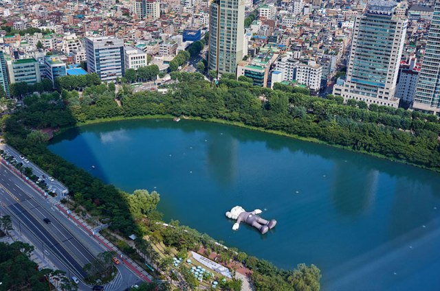 The latest work entitled KAWS:HOLIDAY by American artist KAWS, real name Brian Donnelly, is a 92-foot-long (28 meters) inflatable that can be found reclining on the surface of Seoul’s Seokchon Lake. The installation, done in collaboration with LOTTE and AllRightsReserved, features one of his signature characters and will float on the lake until August 19 before embarking on a world tour.