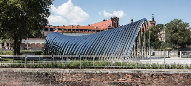 Last year Polish designer Oskar Zieta unveiled the NAWA pavilion, an inflated steel passageway intended to bring cultural activity back to Wrocław’s island of Daliowa. This structure’s reflective, bloated surface makes it look like a weightless mylar balloon despite the fact that is constructed from 35 polished metal arches. Using a technology which Zieta calls FiDU, he inflates the metal by pumping air into the cavity between the arches’ steel sheets which produces a form that is larger and more organically shaped.