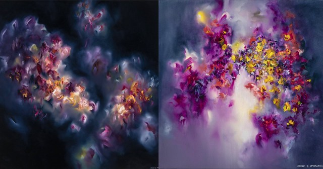 “Wasn’t It Kind of Wonderful” (2017), oil on canvas, 48” x 48””Melissa McCracken paints what she hears, titling each of her abstract oil paintings after the songs that inspired the work’s expressive gestures and bright punches of color. The Kansas City-based artist has a neurological condition called Synesthesia, which causes her sense of hearing to trigger colorful depictions of songs and genres. For McCracken, jazz music appears as iridescent blues, whites, and golds, while an upbeat pop song is bright pink and purple.[…]