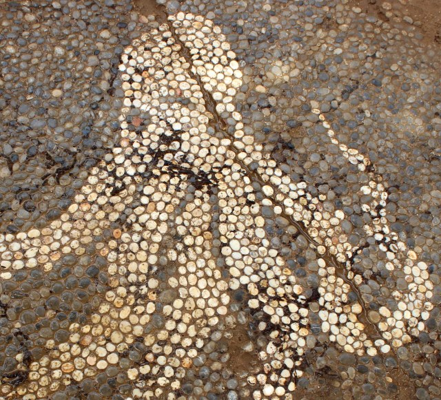 Pebble mosaics dating from the 4th century BC have been unearthed in Arta, Greece. During excavations at the Small Theatre of Ancient Amvrakia, the floor of a 12-foot wide bathhouse was revealed. Achaeologists discovered carefully laid mosaics of swans, octopuses, and winged cherubic figures surrounded by a spiral border. Each design was formed using smooth river pebbles in white, off-white, and dark tones, with amber and red pebbles acting as accents. The dig was conducted by the Ephorate of Antiquities, in the town of Arta, which has been occupied on and off since ancient times.