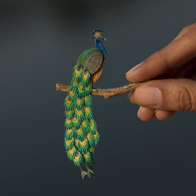 India-based cut paper artists Nayan Shrimali and Vaishali Chudasama have set out to construct 365 miniature bird species by the end of 2018. To form each work, the pair begins by cutting feathers, beaks, and talons from layers of paper and then using watercolor to produce further detail. Despite the works’ small size (some of the tiniest pieces measuring only 3/4 of an inch from head to tail), each bird takes four to six hours to finish depending on the extent of the bird’s colorful plumage. […]