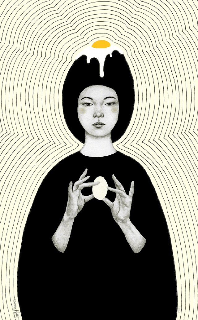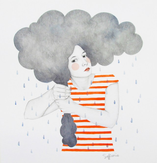 Self-taught artist Sofia Bonati captures nuanced expressions and personalities of a variety of female characters while also integrating them into abstracted environments and patterns. Her illustrations most often feature solo subjects melded with thunderclouds, dizzying mazes, and floral patterns. Bonita renders the women’s features in graphite and she uses gesso, paint, and markers to add colorful accents and build their surroundings. The strong, distinctive expressions on each woman’s face suggests that the characters are in control of their environments, rather than being subsumed by them.