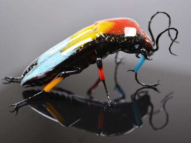 Glass sculptorWesley Fleming creates life-size and anatomically correct sculptures of a variety of bizarre and well-known insects. Thecolorful creatures are small enough to balance gently on the tip of his finger, like a neon orange spider barely larger than his nail. The artist began working with the medium more than 15 years ago at the MIT Glass Lab and has pushed his technique ever since, learning flameworking, sculpting with borosilicate, and the Italian technique of sculpting soft glass on the Venetian island of Murano in 2005[… ]