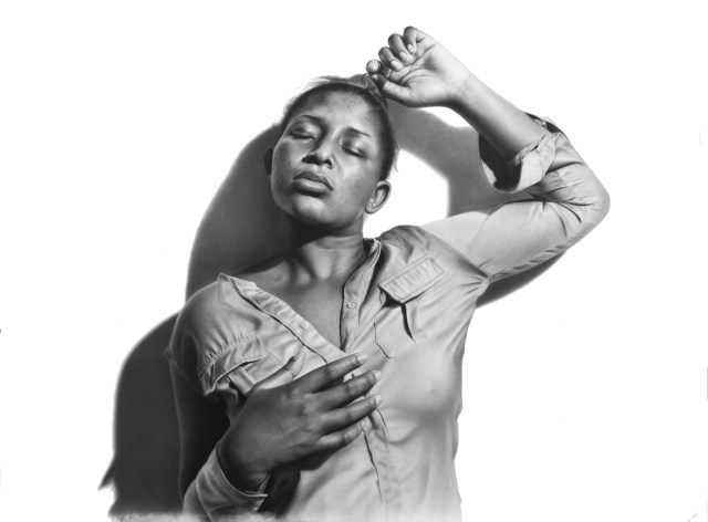 Self-taught Nigerian artist Arinze Stanley (previously) is a wizard when it comes to putting charcoal and graphite to paper. The artist creates hyperrealistic portraits at a scale just larger than life, spending hundreds of hours detailing his subjects’ skin, hair, and sweat so that the works are nearly indistinguishable from black and white photographs. The artist recently opened a solo exhibition of new drawings at Jonathan LeVine Projects in New Jersey titled Mirrors, which seeks to pull viewers in so that they can connect with and see themselves in the subjects.
