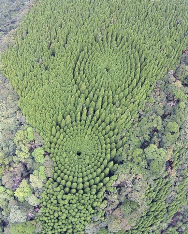 Two peculiar ‘crop circles’ have recently been spotted in Japan’s Miyazaki Prefecture. Viewable only from above, they were formed by sugi (Japanese cedar) trees.