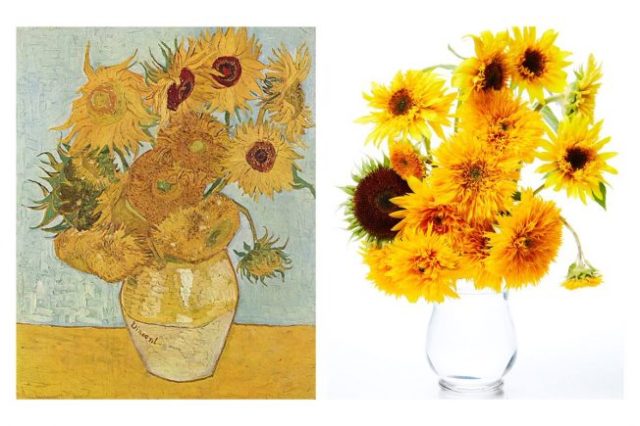sunflowers by vincent van gogh, recreated in real life by makoto azuma