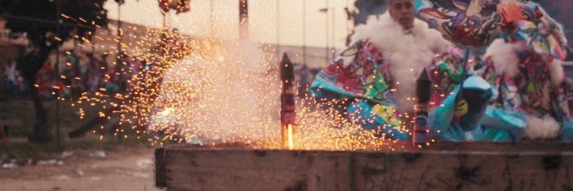 On the outskirts of Rio de Janeiro during its world famous Carnival, far from the beach and the touristic clichés, there is an explosive contest between neighbourhoods. This old form of carnival features teams of futuristic gladiators that are a surreal mixture of play and menace. A tradition that has its roots in ancient European carnival traditions and in African rituals, they look like visitors from another planet.
