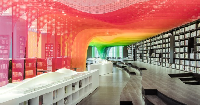 Source: A Cascading Metal Rainbow Fills a Bookstore in Suzhou, China with Layers of Transparent Hues