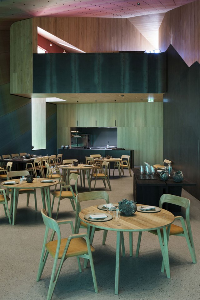 In Norwegian, “under” has the dual meaning of ”below” and ”wonder”. Half-sunken into the sea, the building’s 34-meter long monolithic form breaks the surface of the water to rest directly on the seabed five meters below. The structure is designed to fully integrate into its marine environment over time, as the roughness of the concrete shell will function as an artificial reef, welcoming limpets and kelp to inhabit it.[…]