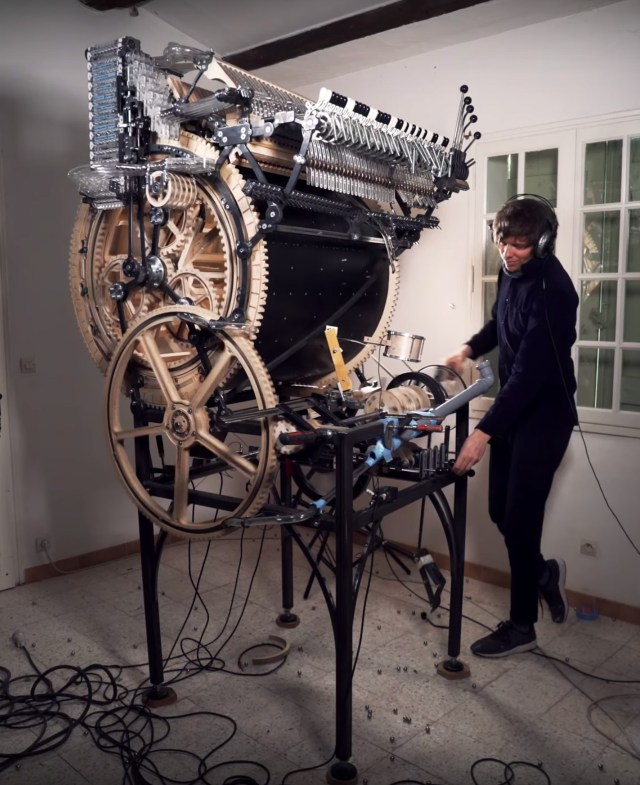 A new video released by the ambitious Wintergatan band of folktronica musicians/inventors (previously) shows the latest developments in their ongoing Marble Machine project. The video above documents the successful completion of the Marble Conveyor Belt, which uses ratchets and pistons to move dozens of marbles around and through the Marble Machine. Martin Molin, who is a member of the band and the inventor of the Marble Machine, demonstrates how the movement of marbles is in time to—and can even create—beats and rhythms in Wintergatan’s music. We’ll leave the technical details to the professionals, but imagine a pinball machine meets an oversized music box.