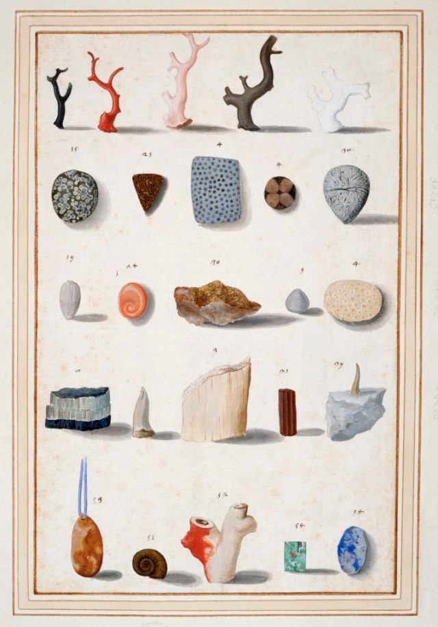 Lapidary and ‘figured’ Stones, Corals, Fossils, semi-precious Stones and Minerals, Vincenzo Leonardi Rome, about 1630-40. Royal Collection Trust © Her Majesty Queen Elizabeth II 2019