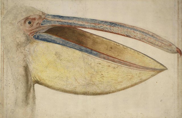 Head of a European or Great White Pelican (Pelecanus onocrotalus) Vincenzo Leonardi (1589/90-1646) Rome, 1635. Watercolour and bodycolour, heightened with gum, over black chalk. Royal Collection Trust © Her Majesty Queen Elizabeth II 2019