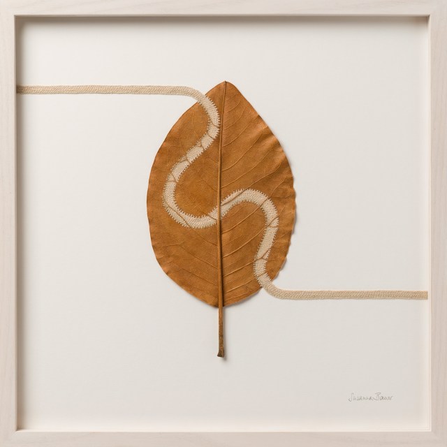 In her series of sewn together and crocheted leaves and twigs, Susanna Bauer (previously) considers the fragility of nature and humans’ inextricable tie to its survival. The Cornwall, England-based artist combines the found elements with fine cotton thread to produce unique objects steeped in the history of craft. Intimate marks add detail to small patches or the complete outline of browned leaves, drawing our attention the natural growth pattens found in their interior.[…]