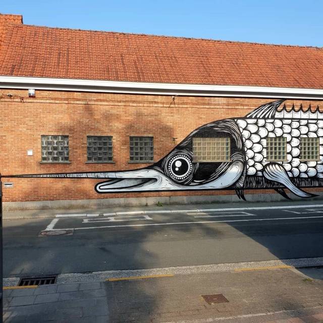 Belgian street artist Joachim paints vibrant murals that look as if they were torn from the pages of a very large children’s book. His illustrative style brings humor and color to walls and structures in cities across the world. Joachim first discovered graffiti and street art as a six-year-old child in Antwerp. As an adult, he began experimenting with various styles both on walls and on canvases as a way to grow and develop his own aesthetic, separate from the work he had done in art school.