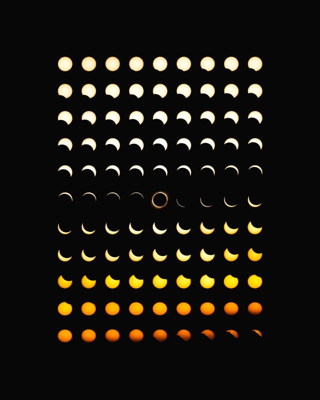 While many professional photographers also documented the event, most images capture the singular moment in one image. Marker-Moore decided to break out the progression in orderly chart-like designs. He shares with Colossal that he experimented with over one hundred different format variants before deciding on the final five.[…]