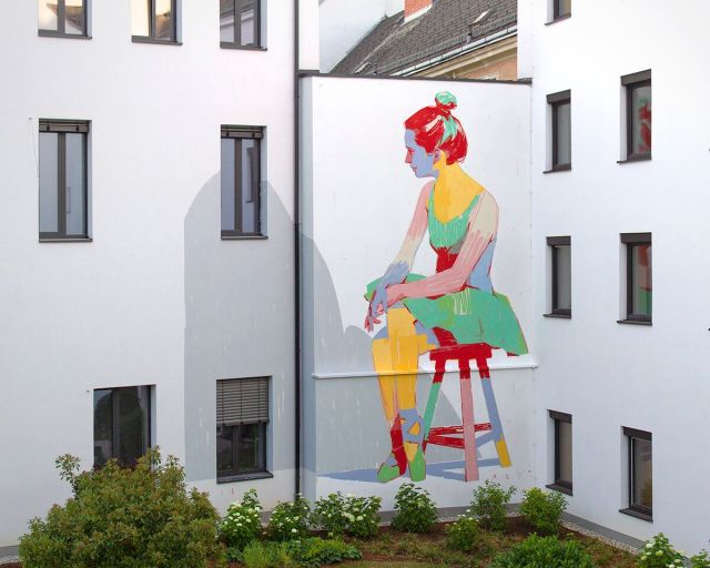 Often leaving the brushwork as visible as possible and mixing vibrant, sometimes clashing colors, he is now fully focused on creating work that aims to translate the unmediated feel of sketching into large-scale murals. “I think, with time, you need to get rid of the technique and at the end go to the basic and go to the essence of the composition of the colors,” Aryz shares with Colossal about his unique manner of building images. “I don’t know if I’m succeeding on that, but that’s my goal at the moment.”[…]