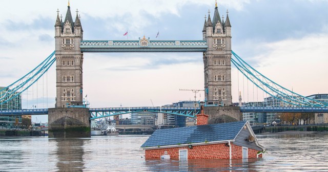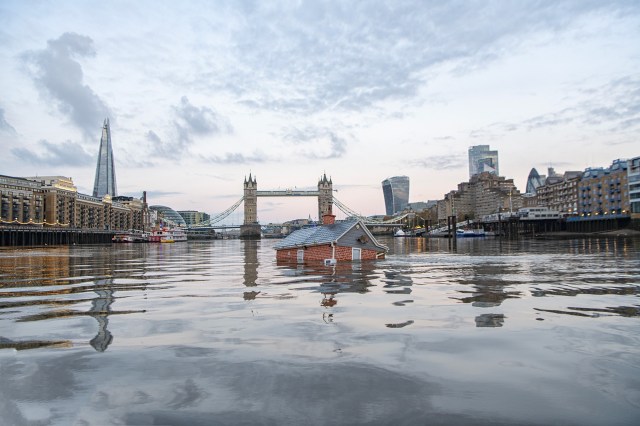 Over the weekend of November 10, activist group Extinction Rebellion launched a dramatic installation in London’s River Thames. “Our House is Flooding” was comprised of a life-size brick house, complete with flood lights, a security camera, and a satellite dish, sunken into the British capital’s major waterway.
