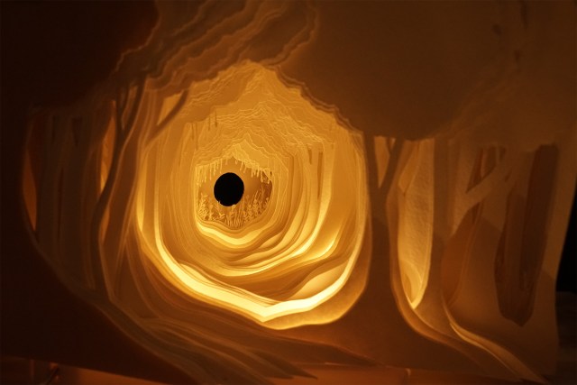 The artist tells Colossal that she doesn’t use pencil outlines, in part because the white paper isn’t durable enough to be erased if there’s an error. Instead, she envisions the three-dimensional shapes she wants to create and begins cutting. “White paper expresses the yang, light, (and) the process to cut expresses the yin, shadow. When the sun shines upon an object, a shadow is born,” she writes. “Front and back, yin and yang, two side(s) of the same coin.”[…]