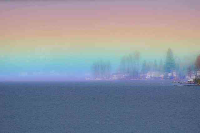 If you need something to put a little smile on your face, look no further than this incredible photograph taken at Lake Sammamish in Washington State. While amateur photographer Cessna Kutz has seen a lot of rainbows over the lake, she wasn’t prepared for what appeared as she peeked out of her window one afternoon. Horizontal bands of color spanned the width of the lake, making for a spectacular sight.