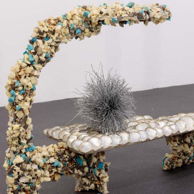 Installed across a floor of vinyl collages, The Pothole presents a series of new sculpture works developed over the past year as the 16th recipient of the major UK award. Combining layers of surplus commodity materials, including shredded foam, gravel, oyster shells, bitumen, chip forks and cardboard, Reading creates a highly tactile and fragmented environment. Her sculptures appear familiar and puzzling at once, existing between life form and architecture, ancient and futuristic and decay and regeneration.[…]