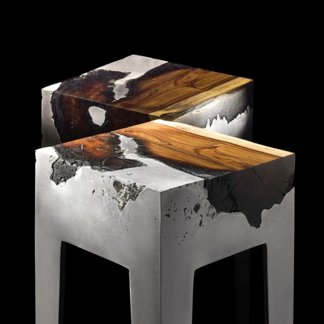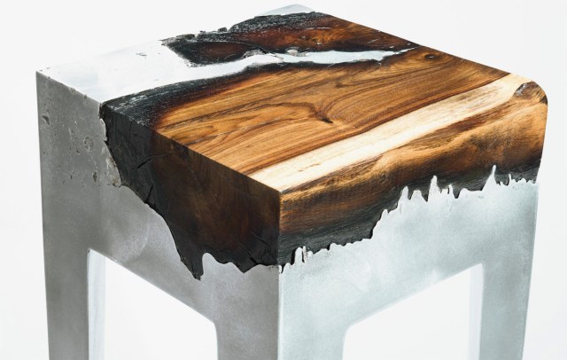 Starting with gnarly hunks of trees, Hilla Shamia (previously) seamlessly merges wood and aluminum into industrial-style furniture. The Tel Aviv-based designer pours the hot metal into leg molds that surround the organic material, preserving the wood’s shape and texture and ensuring that each console, bench, and stool is unique.[…]