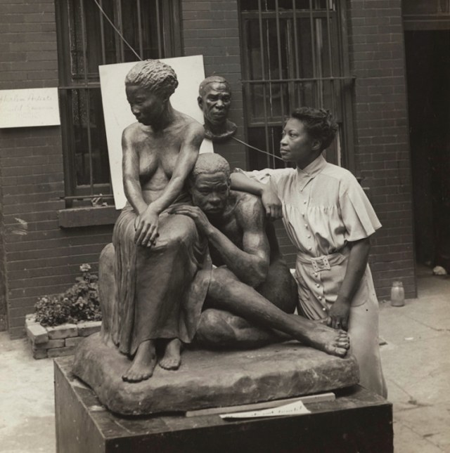 Augusta Savage viewing two of her sculptures, Susie Q and Truckin, c. 1939 (Gelatin silver print, 10 x 8 in.