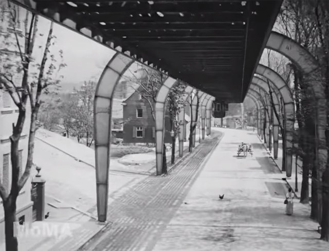 1902, “The Flying Train” takes viewers on an uncommonly crisp journey aboard a suspended railcar. Throughout the two-minute video, riders see Wuppertal residents walking across pedestrian bridges and down dirt roadways more than a century ago. The city is known still today for its schwebebahn, which is a style of hanging railway that’s unique to Germany.