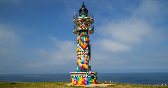 Situated along the coast in Cantabria, the Faro de Ajo has been transformed from a barren facade into a vivid display of more than 70 hues. The undertaking of artist Okuda San Miguel (previously), the 16-meter tower features a striped bird, wild animals rendered in bold blocks of color, and various dots and squiggles. Now bearing the name “Infinite Cantabria,” it is the first intervention on a Spanish lighthouse.[…]