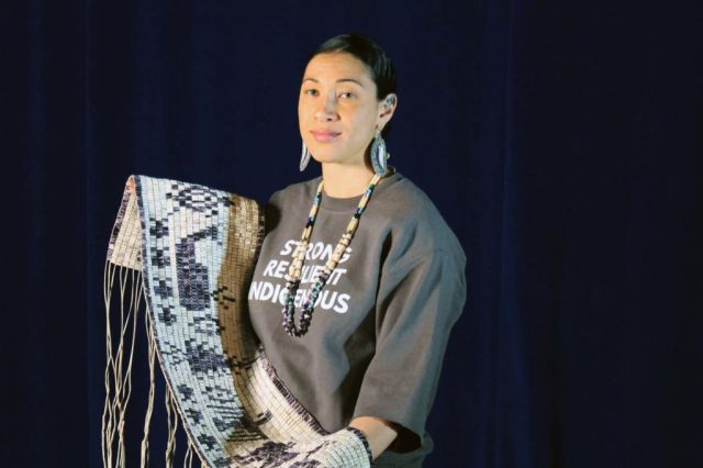Danielle Hill with the new wampum belt.