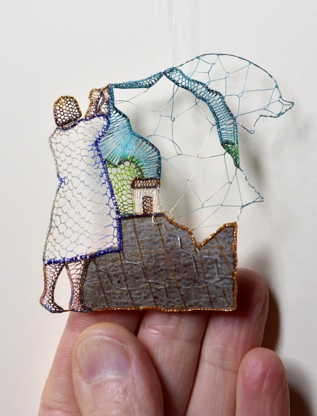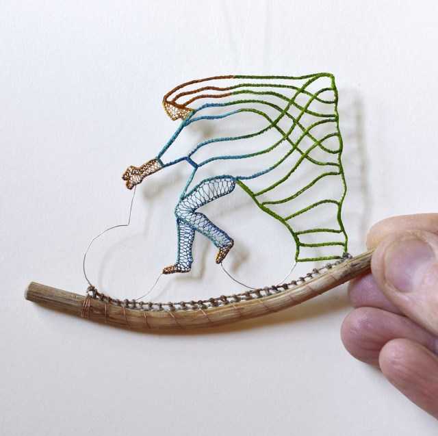 Working within a scale of just a few small inches, Hungarian artist Ágnes Herczeg(previously) threads together fragments of wood, seeds, and wire with delicate lace work to form pastoral scenes inspired in part by her surroundings in a small town near the river Danube. This year Herczeg utilized more tree bark and golf leaf, and developed her abilities with silk thread to create pieces even smaller than before.[…]