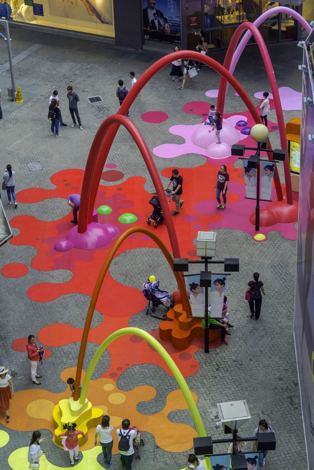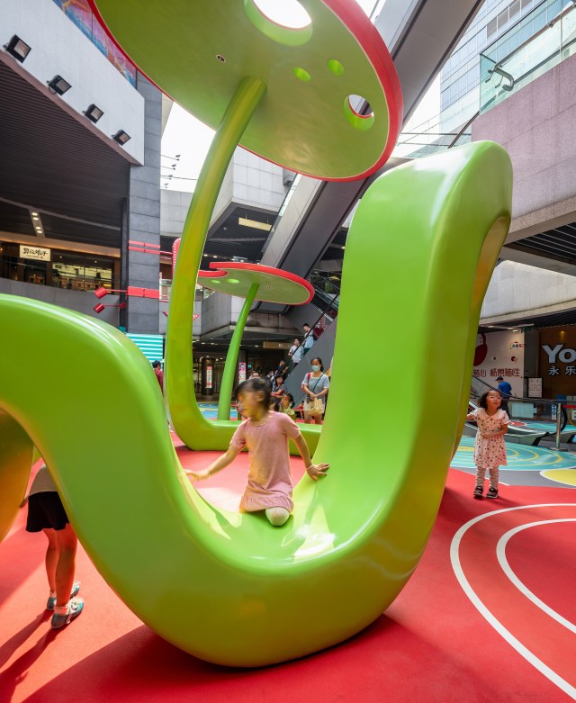 Walk around Shanghai or Dubai, and you might stumble upon a bright, geometric playground amongst the concrete. The design studio 100 Architects installs bold interventions that transform typical urban spaces into colorful playgrounds. Each public structure, which boasts entertainment for both kids and adults, is conceptualized around a theme, whether a massive shower complete with ground-level waves or an illuminated castle with inner tunnels.[…]