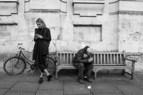 These series of images of people were taken at bus stops as they wait for their buses. Whereas a decade ago people may be reading newspapers or books while they wait, now the waiting time is predominantly taken up by the mobile phone. It has turned from a technological tool to a social tool. Though people use the mobile phone in many positive ways it has created rifts in peer relationships. The mobile device has become a companion and a friend without which it may be difficult to pass our time. One would rather text someone on the other side of the world than talk to someone sitting on the same bench.[…]
