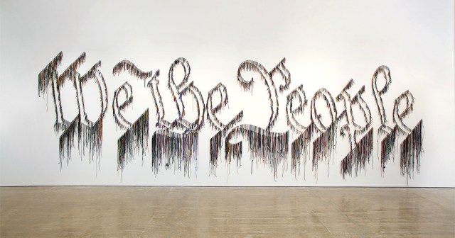 “We the People” (2011), (detail), shoelaces, 96 x 324 inches