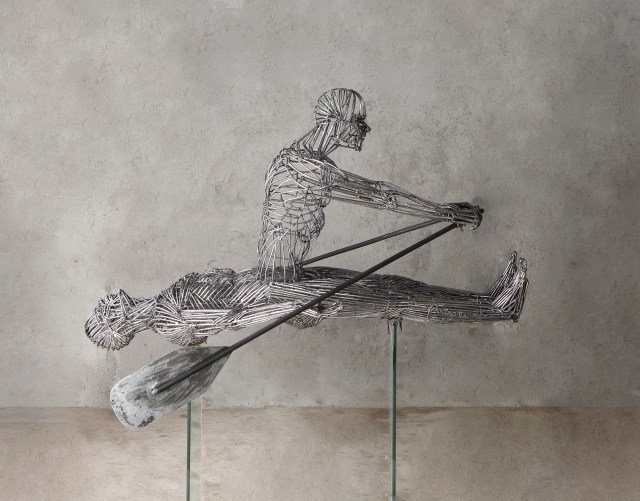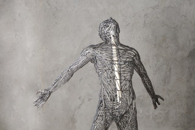 Joshua Limon Palisoc draws on the tenets of Filipino Psychology to inform his life-sized figures that radiate from the inside. Using mesh-like forms of soldered metal, the artist conveys the idea that the physical body is simply a vessel for the soul. LED lights nestled within the anatomical sculptures emit a warm glow through the seams, blurring the boundary between inner and outer selves.