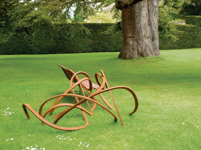 “Spaghetti corten” (2008), corten steel and teak, 80 x 344 x 172 centimeters