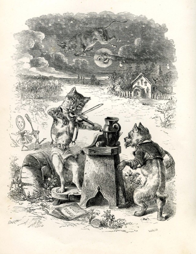 One such example is found in the rhyme “Hey Diddle Diddle.” There are those who believe this jingle was inspired by the court of England’s ElizabethI. Known to some as “The Cat” for the way she toyed withthe minds of her political courtiers and the hearts of her many suitors, Elizabethwas also known to be fond of dancing, particularly to fiddle music. Similarly, the third line of the poem, “The little dog laughed to see such a sport” is said to be a reference to Robert Dudley, a suitor to whom Elizabethreferred by saying “He is like my little lap-dog…” And finally, interpreters have also suggested that the final line of the rhyme, “The dish ran away with the spoon,” is meant to depict the secret union of Lady Katherine Grey and Earl Edward of Hertford. These two nobles were bestowed the nicknames the “dish” and “spoon” due to Edward’s role as a barer of golden flatware into the royal dining room and Lady Katherine’s role as the “taster of royal meals.”