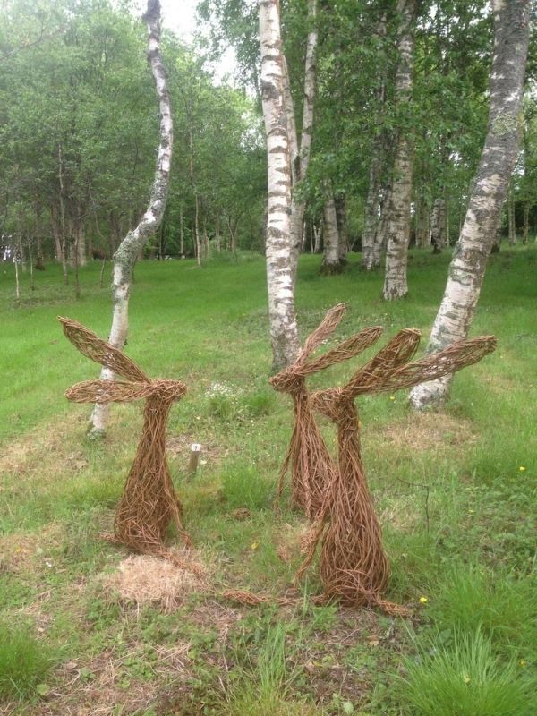 Dartmoor based willow artist Katherine Miles loves to create life size (or larger) willow animals and watch the individual characters come alive as she weaves. She particularly likes to create groups of animals where you can feel the connection between them. Her work is displayed in stately homes, private gardens and as interior design pieces. She weaves animals and other sculptural pieces mainly to commission. Sculptor’s Comments:The hare sculptures are very popular and can be made to order.