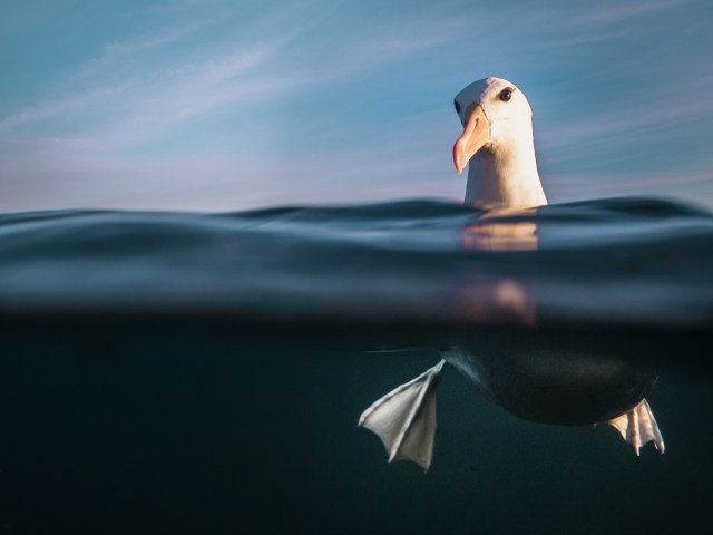 An exquisite shot of blacktip reef sharks circling underneath a jewel-toned sky in French Polynesia tops this year’s Underwater Photographer of the Year contest (previously). Captured by California-based Renee Capozzola, the winning entry frames a pair of the white-bellied fish and airborne seagulls, forming a serendipitous composition that combines air, land, and sea. “I dedicated several evenings to photographing in the shallows at sunset, and I was finally rewarded with this scene: glass-calm water, a rich sunset, sharks, and even birds,” she said.