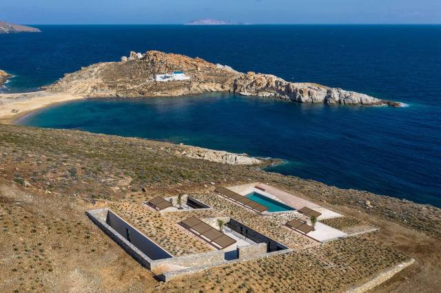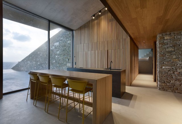 When dealing with a complicated site—like a rocky cove on a beautiful Greek island—one of the biggest design decisions is how the building will sit on the land. Some designers use columns to lift the building off the sloped ground while others build partially into the land. Mold Architects chose the latter with the NCaved house; it perfectly follows the contours of the cliff, creating an incredible hidden gem with an excellent view of the water.