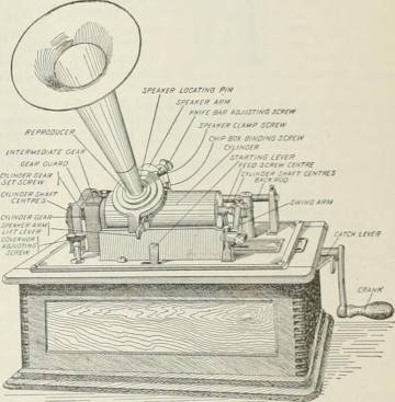 Illustration of a wax cylinder phonograph from The new international encyclopaedia (1905) (via Internet Archive Book Images/Flickr)