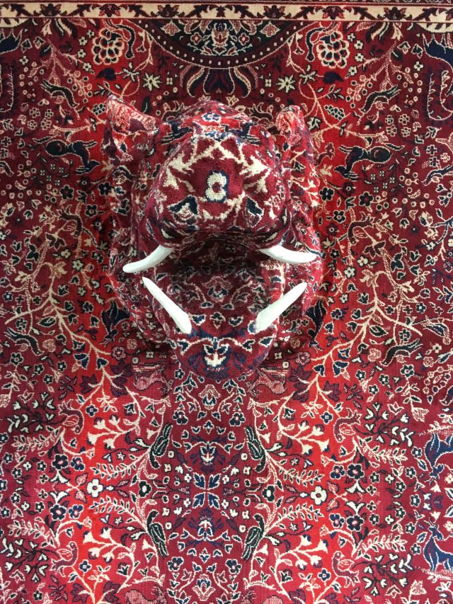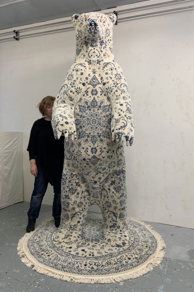 A new menagerie of polar bears, stags, and kangaroos resemble typical wildlife except for the fact that they’re literally swept under the carpet, their features hidden from view. These towering sculptural forms are by artist Debbie Lawson (previously), who crafts animals that are cloaked in sweeping Persian rugs. Rather than being camouflaged by a forest, jungle, or snow-covered Arctic, Lawson’s creatures boldly protrude from the fabric and loom over the viewer.