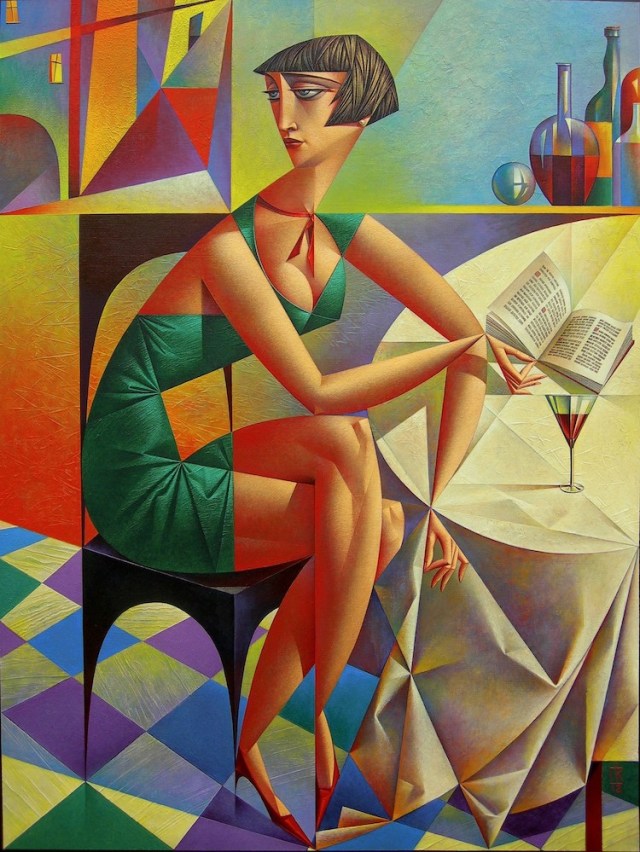 Similarly, Kurasov uses neo-Constructivist principles in his paintings by depicting men and women in fragmented form. Not only does this approach distort his subject’s bodies into extreme proportions, but it also creates a surreal sense of space. The slivers of different colors construct a warped perspective in which objects are flattened until they appear two-dimensional. Altogether, these stylistic choices make each one of Kurasov’s paintings a mesmerizing experience.[…]