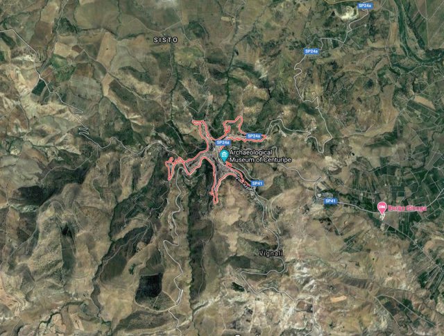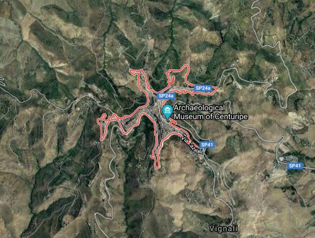 In the province of Enna, Sicily, lies the mountain town of Centuripe, seen here on Google Maps:
