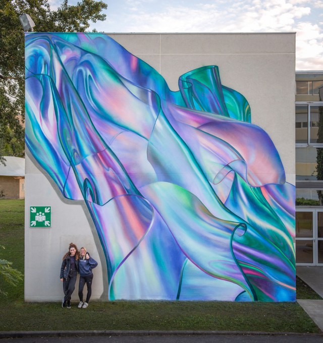 More: Trompe L’oeil Textiles Billow Across Murals by Rosie Woods in Iridescent Ripples
